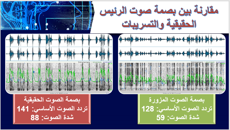 ومن هنا فكان لابد من تحليل هذا التسريب الصوتي، مقارنة ببصمة الصوت الحقيقية للسيد الرئيس عبد الفتاح السيسي، لنبرز أهمية التحليل الصوتي ودور بصمة الصوت في الكشف عن مثل هذه الأكاذيب والشائعات، التي تضر بالأمن القومي للبلاد.