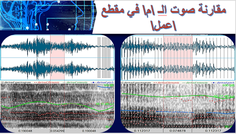 وأيضاً، أوضحت نتائج تحليل صوت الـم، أنظر الرسم (2 و3)، مدى الاختلاف بين العينتين الصوتيتين، وذلك بالأرقام والبراهين والقياسات الفيزيائية. حيث إن صوت الـم يخرج من التجويف الأنفي للشخص المتكلم، وهذا التجويف هو مكان ثابت تشريحيا في مقدمة وجه الإنسان، ويمتد حول الأنف، وعند نطق صوت الـم في سياقات مختلفة يهتز هذا التجويف ليصدر موجات صوتية، واهتزازات مختلفة الشدة، تختلف شدتها من شخص إلى أخر.