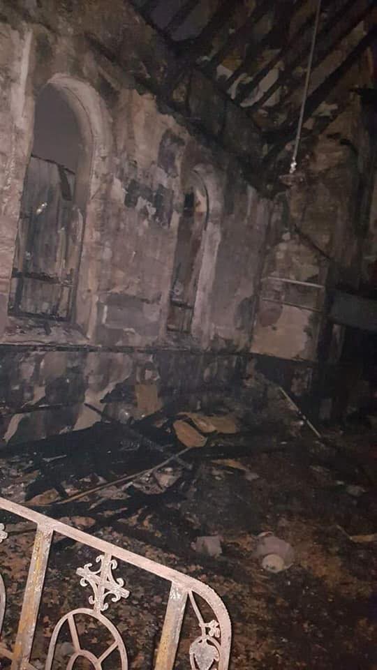 بالصور .. أثار حريق كنيسة مارجرجس فى حلون