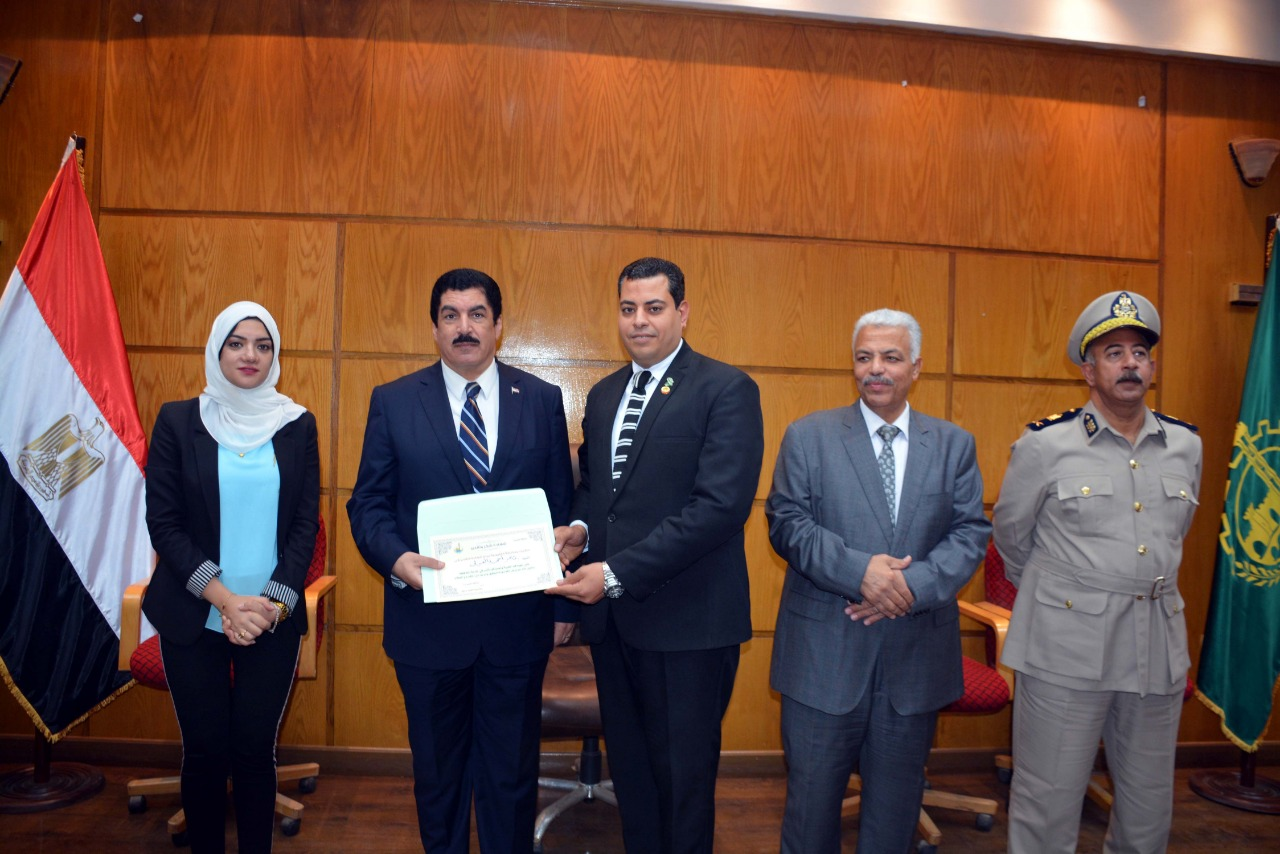 محافظ القليوبية يكرم مجموعة من الشباب المتطوعين لتجميل مدينة بنها