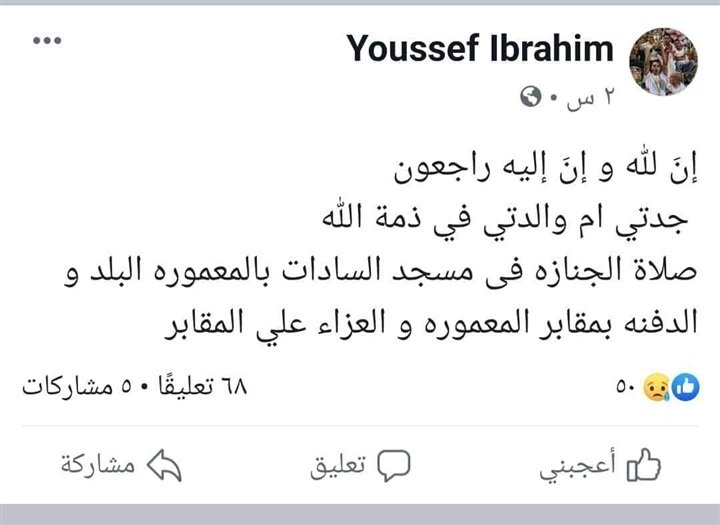 أعلن يوسف أوباما لاعب الفريق الأول لكرة القدم بنادي الزمالك، عن وفاة جدته صباح اليوم الأربعاء.