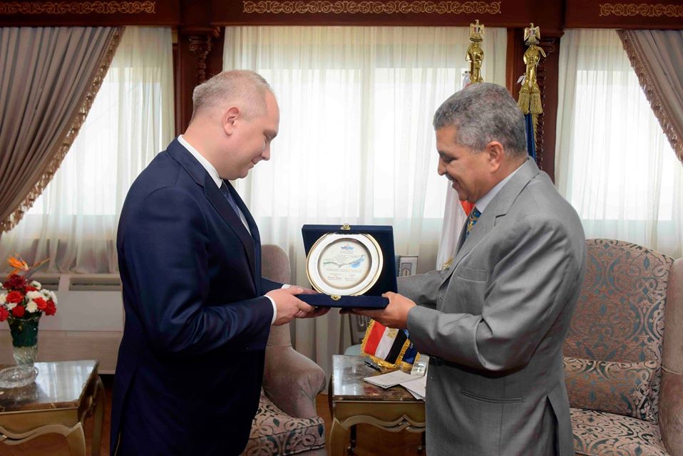 رافق نائب الوزير الممثل التجاري الروسي في مصر، ورئيس مجلس إدارة شركة AK BARS، والمدير التنفيذي للشركة، والمدير العام لمركز تكنولوجيا بناء وإصلاح السفن. كما حضر اللقاء عدد من اعضاء مجلس إدارة الهيئة ورؤساء شركات كل من الشركة البورسعيدية وشركة القناة للإنشاءات البحرية وشركة ترسانة السويس البحرية ومستشار رئيس الهيئة للترسانات، وقيادات شركة AK BARS الروسية إحدى الشركات العالمية الكبرى في مجال بناء السفن، بهدف بحث سبل تفعيل بروتوكول التعاون المشترك بين هيئة قناة السويس وشركة AK BARS لتطوير ترسانات الهيئة و فتح آفاقاً جديدة للتعاون في مجالات إصلاح وبناء السفن بكافة أنواعها وفئاتها، وذلك بمبنى الإرشاد بالإسماعيلية.