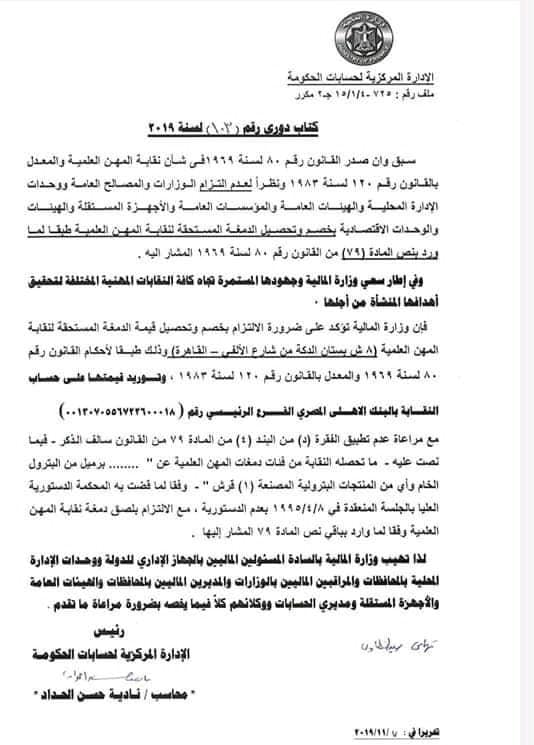 وتابع قائلًا :" كلفنا مستشارا قانونيا متخصصا بالقيام بهذا الدور وعقدنا معه عقدا على نسبة يتقاضها مقابل ما يحصله للنقابة من حقوق.. واليوم حصلنا على المستند الاول الذى يفتح لنا هذا الباب لنعيد هذه الحقوق للعلميين ولإنجاح مساعينا فى زبدة المعاشات بإذن الله ."