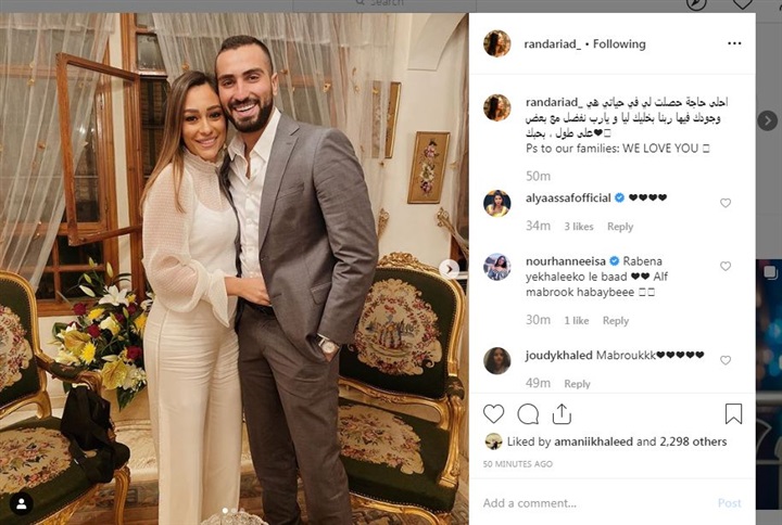 نشرت راندا رياض صورا جديدة عبر حسابها الشخصي بموقع تبادل الصور إنستجرام تجمعها بالفنان محمد الشرنوبي، بعد إعلان خطوبتهما.