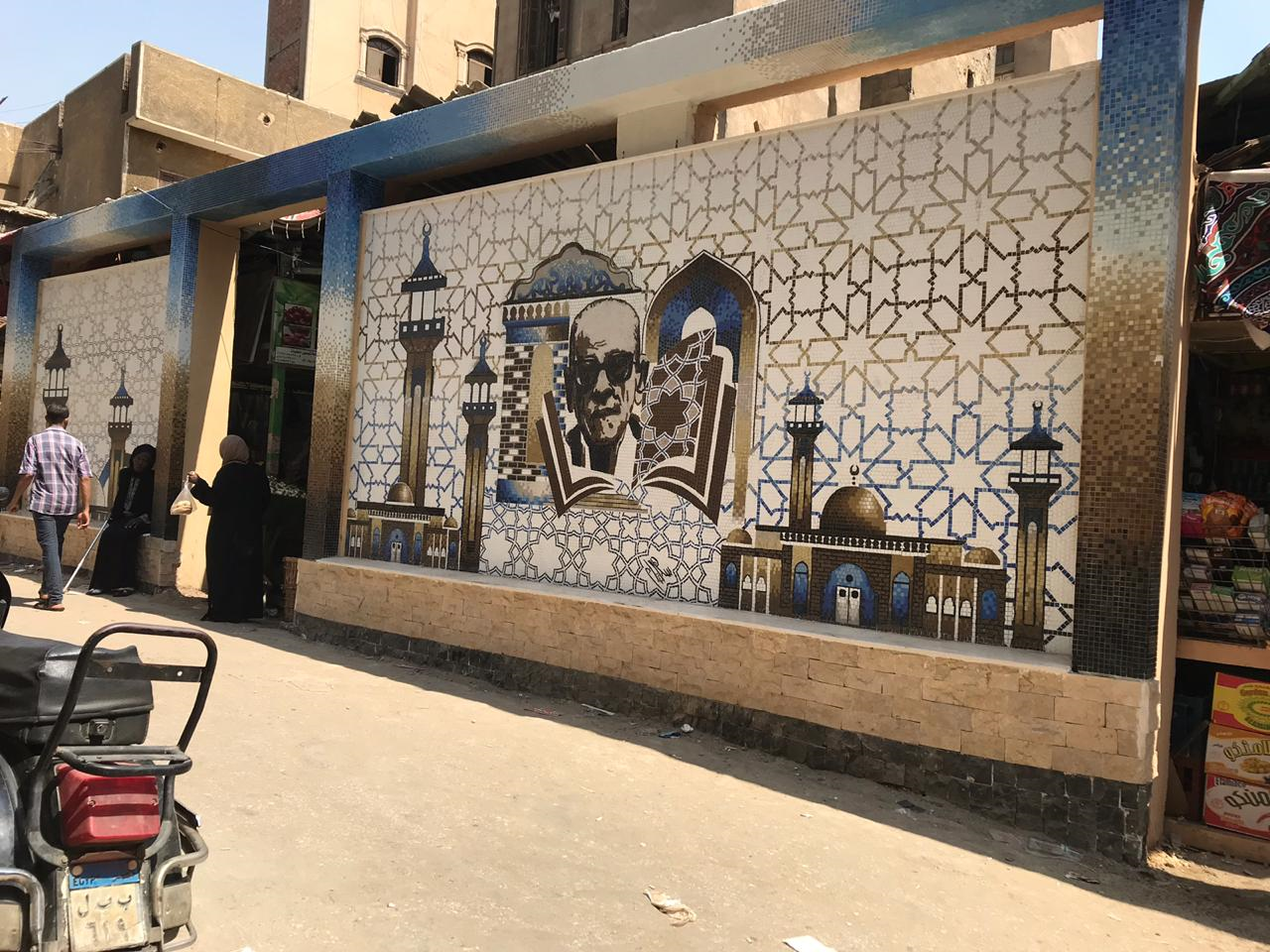 اوضحت الفنانة التشكيلية أنها قامت بمعاينة المنطقة المحيطة، وكذلك معاينة المتحف ومحتوياته، بحيث يخرج التصميم معايشًا لعدة عوامل، الأول منها المنطقة، حيث أنه يقع في قلب القاهرة التاريخية، وما تحويه من مساجد ومدارسة ومآذن، والثاني هو أن التصميم استوحى روح الأديب نجيب محفوظ ومقتنياته بالمتحف، حتى أن وجهه جاء معبرًا عن عبقريته وروح الكاتب بداخله.
