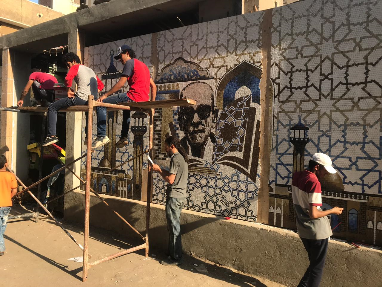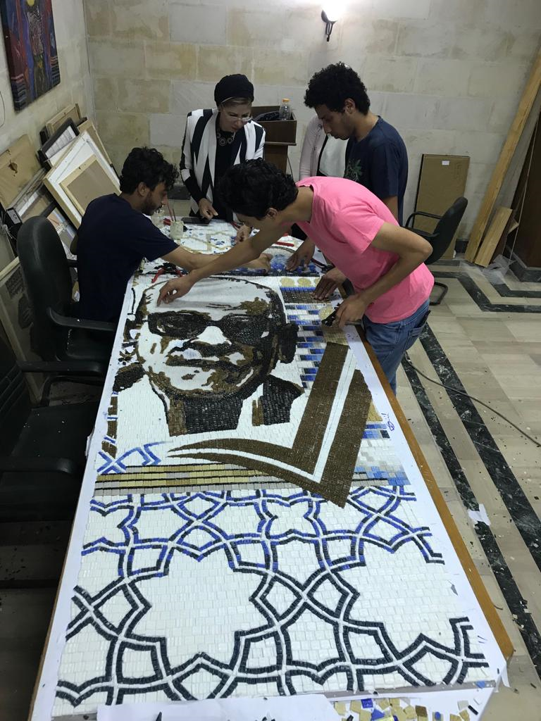 وعن فريق العمل قالت عثمان إنه مكون 20 طالب وطالبة من طلبتها تحت اشرافها ، وانهم استطاعوا الانتهاء من هذا العمل الرائع في 15 يوم عمل بالاضافة الي 5 أيام في التركيب.