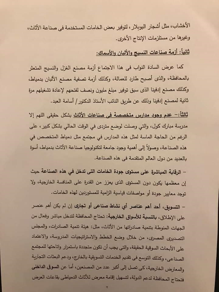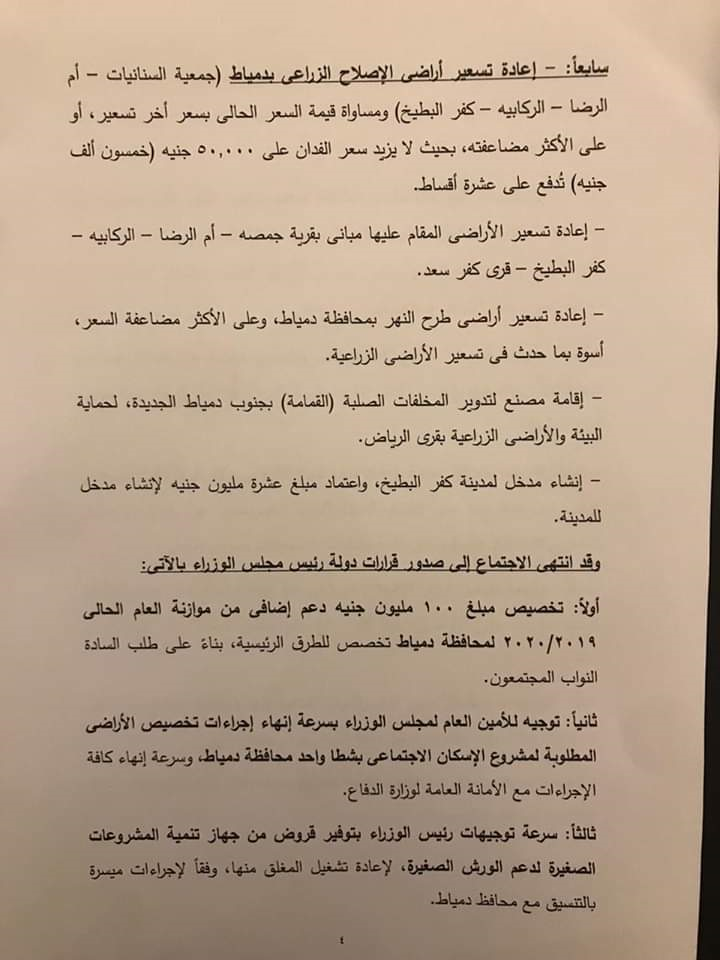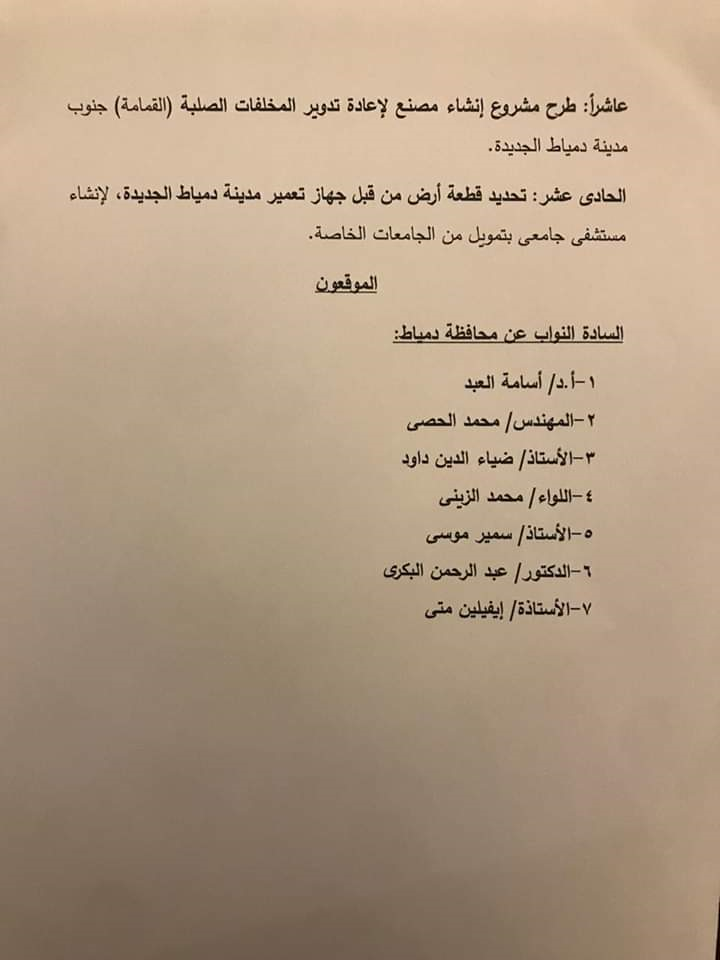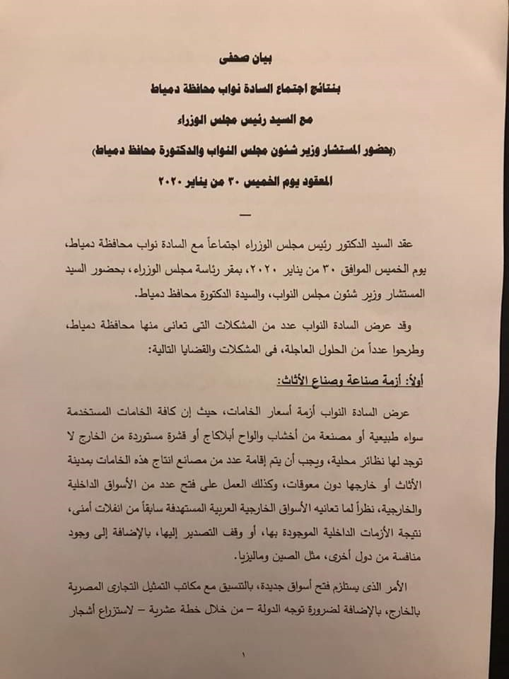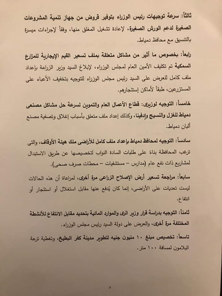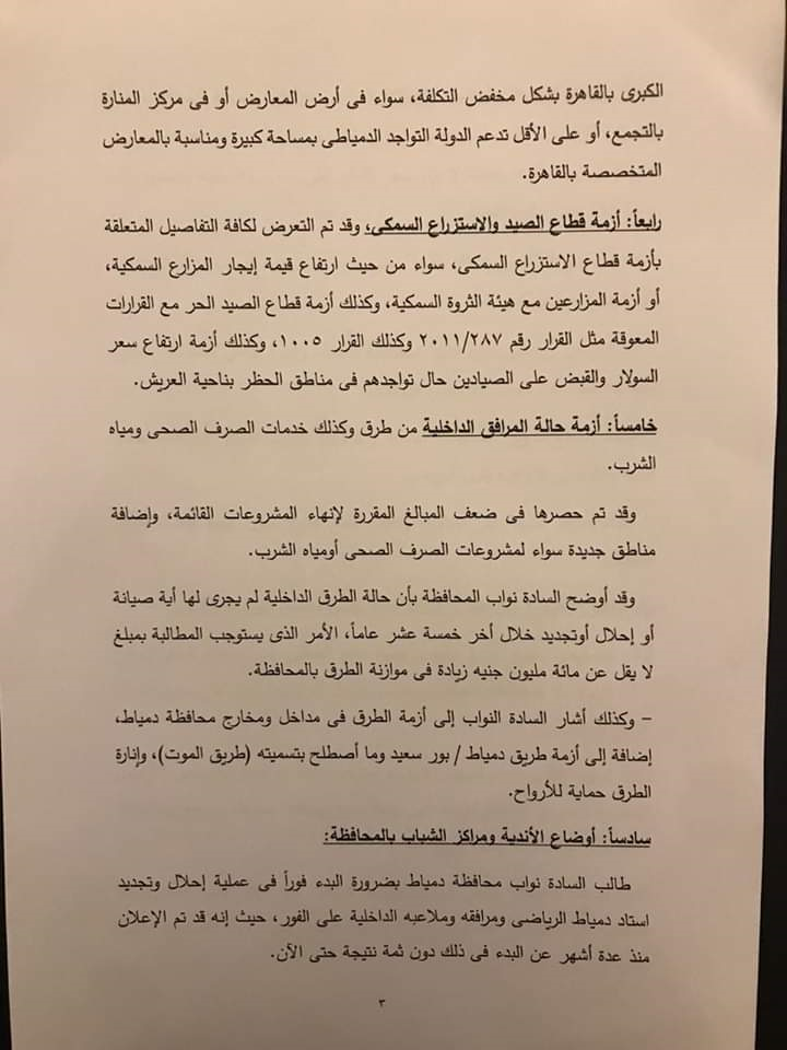 كما تتقدم المحافظ بالشكر أيضاً الى السادة أعضاء مجلس النواب عن محافظة دمياط على تنسيقهم المستمر مع المحافظة وحرصهم على طرح كافة القضايا التى تمس المواطن الدمياطي، إذ أسفر ذلك اللقاء عن..