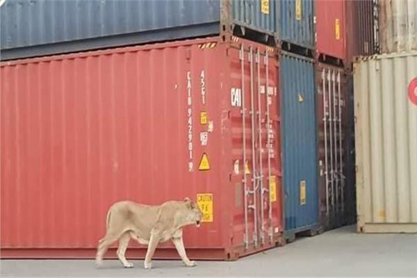 بالصو.. 3 أسود تتجول بين الحاويات.. وميناء الإسكندرية يرد
