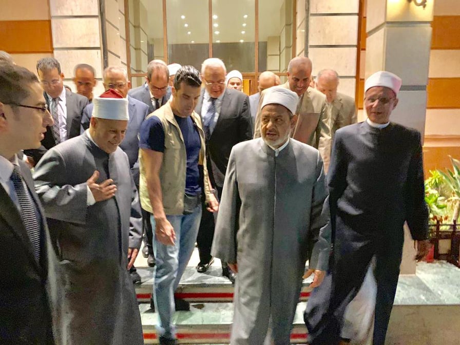 وكان في استقبال فضيلته فى مطار القاهرة وفدًا رفيع المستوى من قيادات الأزهر الشريف، حيث تواجد فضيلة الشيخ صالح عباس، وكيل الأزهر، و الدكتور محمد المحرصاوي، رئيس جامعة الأزهر، ونواب رئيس الجامعة، و الدكتور نظير عياد، أمين عام مجمع البحوث الإسلامية، والشيخ علي خليل، رئيس قطاع المعاهد الأزهرية، و دكتور إسماعيل الحداد، أمين عام المجلس الأعلى للأزهر، و مؤمن متولي، أمين عام جامعة الأزهر، و دغش محمد، مدير قطاع مكتب شيخ الأزهر، وأعضاء المكتب الفني لفضيلة الإمام الأكبر.
