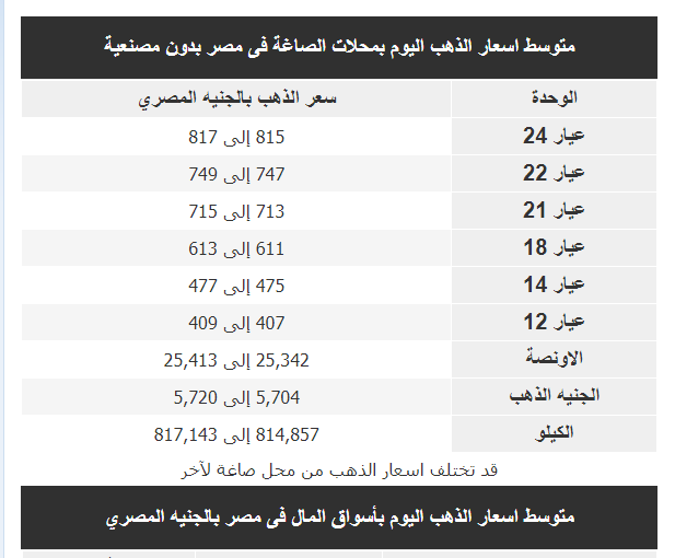 ويشهد سعر أعيرة الذهب في محافظات مصر تفاوتًا طفيفًا قد يتراوح بين 50 قرشًا وجنيه، كما يتراوح متوسط سعر المصنعية والدمغة في محلات الصاغة بين 30 و65 جنيهًا باختلاف نوع عيار الذهب، وكذلك باختلاف محلات الصاغة ومن محافظة إلى أخرى ومن تاجر إلى آخر، حيث تمثل في الأغلب نسبة تتراوح بين 7 و10% من سعر جرام الذهب، وكلما زادت نسبة المعادن الموجودة قل القيراط، وتستخدم الأوقية التي تزن "31.1 جرام" كوحدة لوزن الحلي وسبائك الذهب.