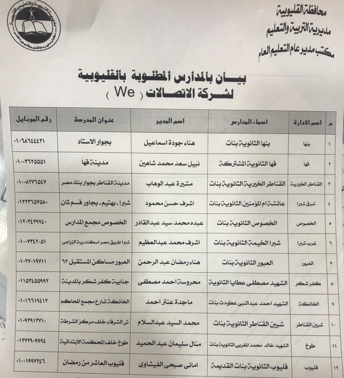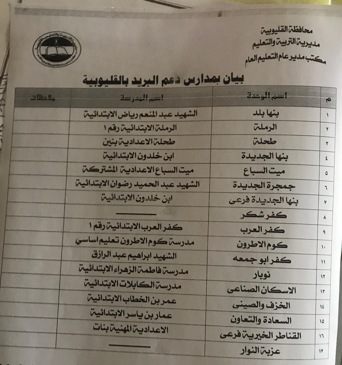 اعلن المحافظ أنه سيتم تخصيص عدد 15 مدرسة كمكاتب لصرف المعاشات لمنع التزاحم في المناطق التي بها كثافات سكانية عالية كما تم مخاطبة السيد مدير أمن القليوبية لتوفير دوريات أمنية لتأمين مقار مكاتب البريد ومخاطبة العمد والمشايخ والجمعيات الاهلية ليكون لهم دورا تنظيميا ومجتمعيا خلال فترة صرف المعاشات كما تم تكليف السادة رؤساء المدن والأحياء بمتابعة مقار مكاتب البريد والمدارس ومراكز الشباب لتكون جاهزة إداريا وتوفير ما يلزم لها.