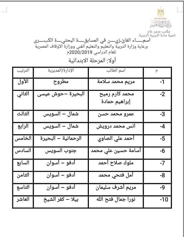 فازت كلا من الطالبة مريم سلامة بمدرسة الروضة الخاصة بمطروح بالمركز الاول على مستوى الجمهورية للمرحلة الابتدائية ، والطالب علي الصغير بمدرسة الشهيد المعناوي بالمركز الخامس علي مستوي الجمهورية للمرحلة الإعدادية فى المسابقة البحثية للغة العربية والتربية الدينية التى نظمتها وزارتى التربية والتعليم والاوقاف صرح بذلك الدكتور سمير النيلى وكيل وزراة التربية والتعليم بمطروح واضاف ان ما تحقق من فوز بالمراكز الاولى على مستوى الجمهورية ياتى للدعم المستمر من اللواء خالد شعيب محافظ مطروح لمنظومة التعليم بالمحافظة ، مع اهداء مديرية التربية والتعليم له هذا الفوز ، والذى ياتى ايضا مع العمل المخلص والاداء المتميز والجهود المثمرة طوال العام الدراسي خاصة لتوجيه عام اللغة العربية وتوجيه عام التربية الاسلامية، مقدما الشكر لمعلمي ومديري مدرستي الروضة والمعناوي (المشرفين على الطلاب) والمشاركين في تصفيات المسابقة بمختلف مراحلها و أولياء أمور الطلاب، حيث ياتى هذا الفوز هو تتويجًا لجهود فريق عمل متعاون ومجتهد، بينما وجه اللواء خالد شعيب محافظ مطروح التهنئة للطالبين الفائزين بالمركز الاول والخامس فى المسابقة ولمديرية التربية والتعليم ولموجهى واولياء امور الطالبين ، مؤكدا على دعم المحافظة لكافة الكفاءات والمواهب المتميزة فى كافة المجالات خاصة فى قطاع التعليم متمنيًا مزيد من النجاح والتقدم لجميع أبناء مطروح.
