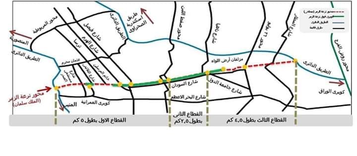 وقال المصدر، إن المحور المروري الجديد على المسار المغطى لترعة الزمر في المسافة بين القوس الجنوبي للطريق الدائري بالقرب من ميدان المنيب والقوس الشمالي للطريق الدائري بمنطقة إمبابة بطول 12 كم بتكلفة تقديرية 3.8 مليار جنيه.