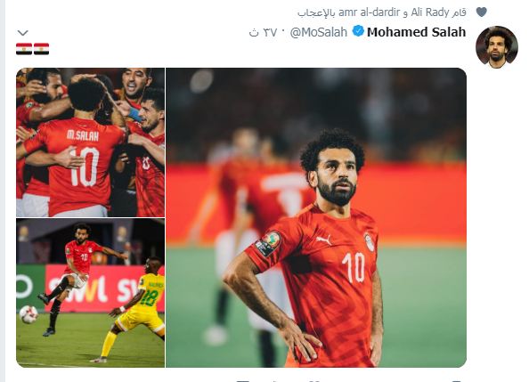 نشر النجم المصري محمد صلاح لاعب المنتخب الوطني المحترف ضمن صفوف فريق ليفربول الإنجليزى، صورًا من فوز الفراعنة على زيمبابوي، في المباراة التي أقيمت أمس الجمعة، ضمن الجولة الأولى من بطولة كأس الأمم الأفريقية 2019.