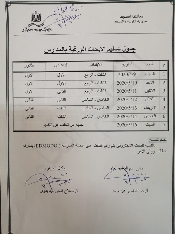 محافظات جدول تسليم الابحاث الورقية بالمدارس بمحافظة اسيوط 2020-05-07 16:22:16 محافظ أسيوط محافظ أسيوط محمد عبد المنصف جدول تسليم الابحاث الورقية بالمدارس بمحافظة اسيوط اخبار متعلقة {{title}} التعليقات الأكثر قراءةً {{title}}{{section}} {{date}} الفيس بوك بوابة عارف ٢٤ تويتر Tweets by albawabaalmasry