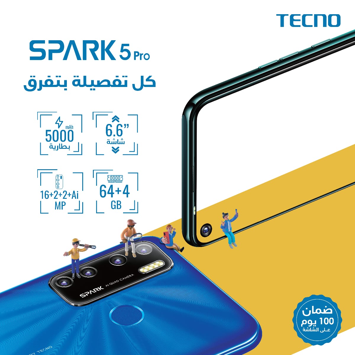 أعلنت "تكنو موبايل"، العلامة التجارية الرائدة في مجال تصنيع الهواتف الذكية وإحدى شركات مجموعة "ترانشن " العالمية ، عن بدء الحجز المسبق لهاتفها الجديد Spark 5 Pro قبل الإطلاق الرسمى فى السوق المصرى و بسعر2049 بالإضافة الى ضمان 100 يوم علي الشاشة مما يعنى انه اذا تعرضت الشاشة للكسر فى غضون فترة الضمان من بعد الشراء سيتم تغيرها على الفور من خلال مراكز “كارل كير.”