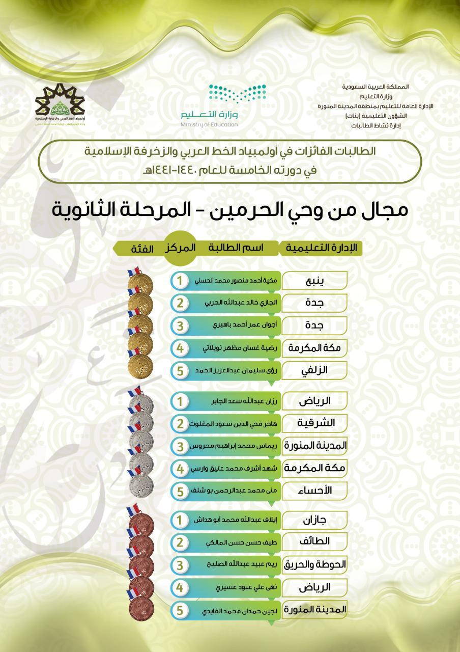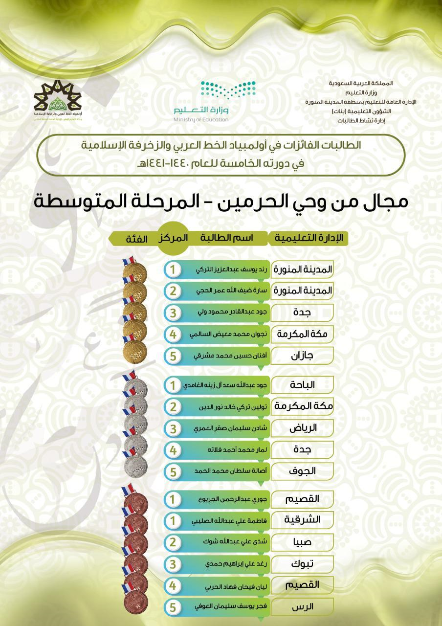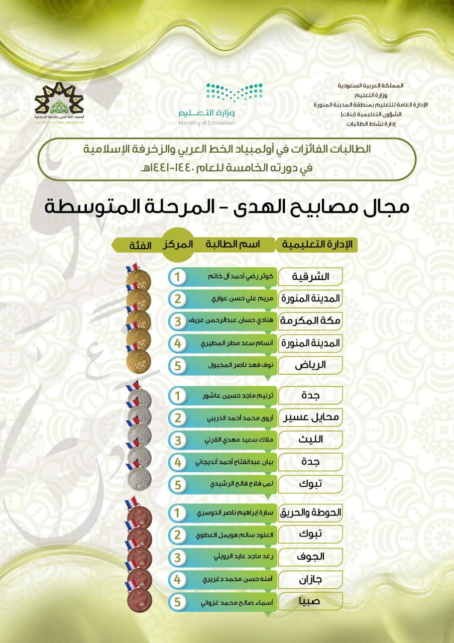 تعليم المدينة المنورة يعلن نتائج أولمبياد الخط العربي و الزخرفة الإسلامية في دورته الخامسة