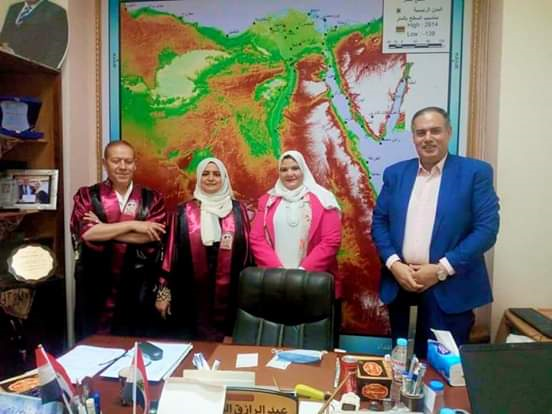 حضر المناقشة الأستاذ الدكتور أحمد عياد وكيل كلية الآداب جامعة طنطا للدراسات العليا والأستاذ الدكتور عبد الرازق الكومى رئيس قسم الجغرافيا ونظم المعلومات الجغرافية بالكلية .