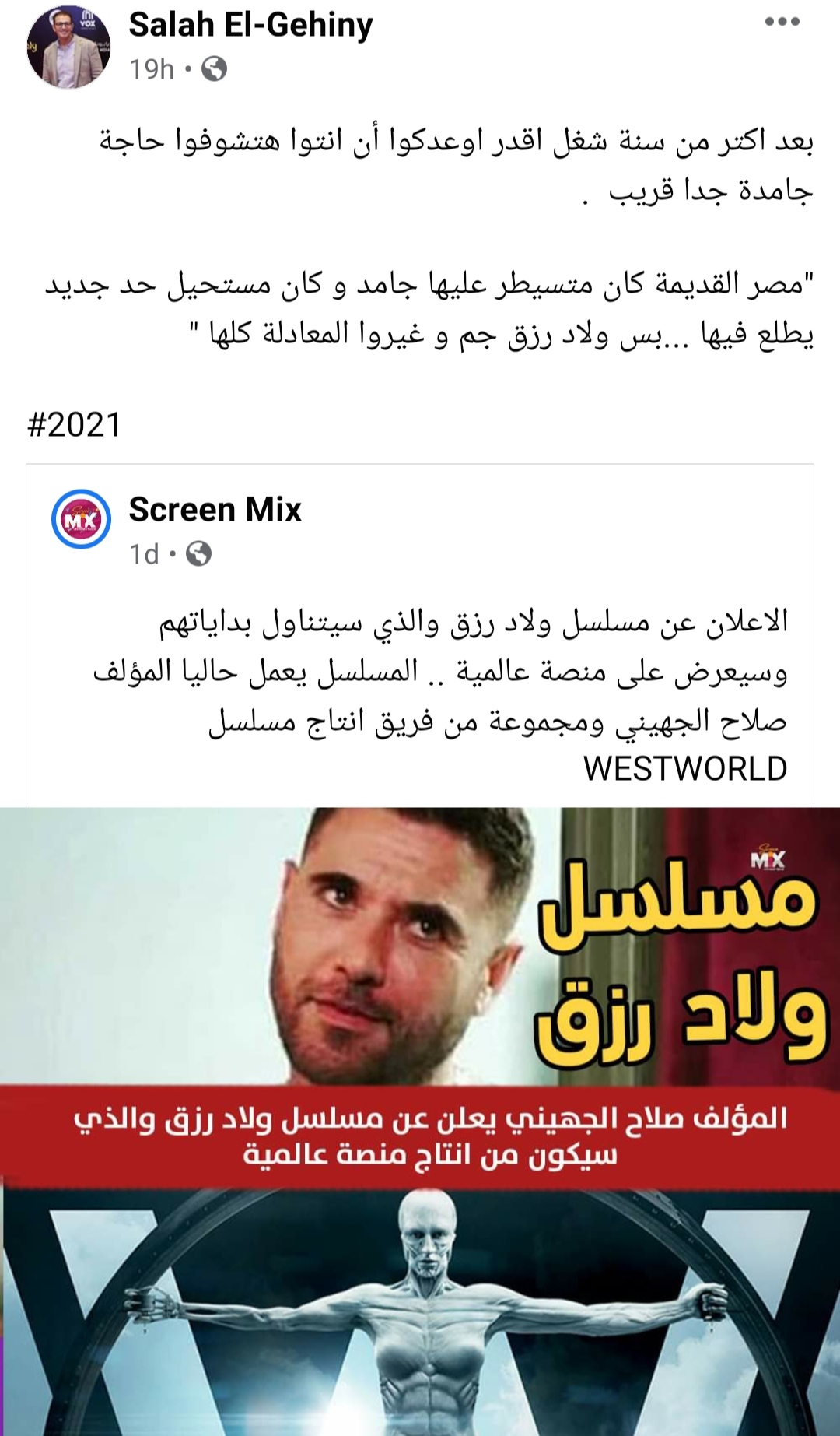 وأضاف، "مصر القديمة كان متْسيطر عليها جامد وكان مستحيل حد جديد يطلع فيها.. بس ولاد رزق جم وغيروا المعادلة كلها 2021".