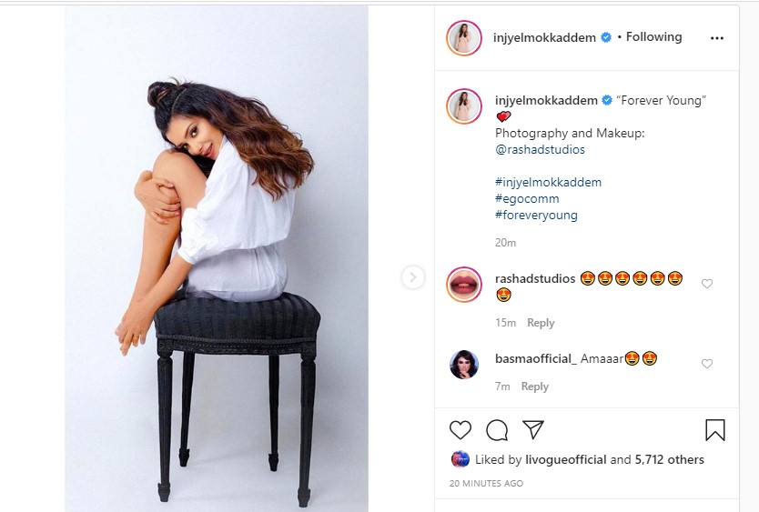 أطلت الفنانة إنجى المقدم، بصور جديدة على جمهورها ومتابعيها، والتى تمتعت بالجرأة والحيوية، حيث ارتدت قميص أبيض طويل "شميز"، وخضعت لجلسة التصوير "فوتوسيشن"، فى وضعية الجلوس حافية القدمين على مقعد عالى، ونشرت إنجى الصور عبر حسابها الشخصى على موقع "انستجرام"، وكتبت فى تعليقها عليها: "شباب للأبد".