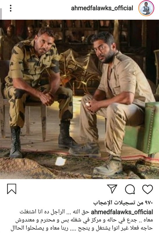 نشر الفنان أحمد فلوكس عبر حسابه في موقع التواصل الاجتماعي انستجرام صورا تجمعه مع صديقه الفنان أحمد عز من فيلم الممر.