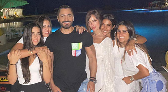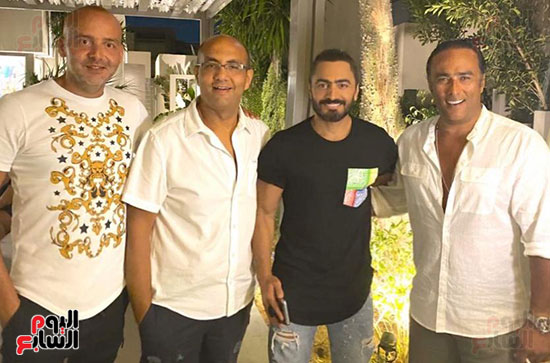 بالصور ...تامر حسنى يحتفل بالانتهاء من تسجيل ألبومه الجديد