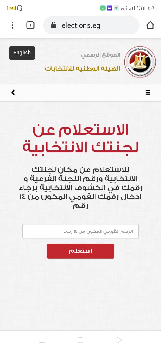 أولا: إما عبر موقع الهيئة الرسمى www.elections.eg ، وذلك من خلال ادخال رقمك القومي المكون من 14 رقما.