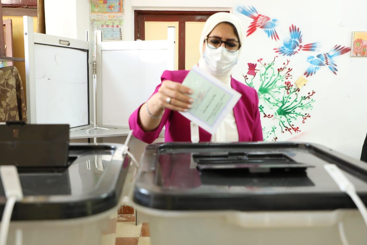 ” خلال الإدلاء بصوتها” وزيرة الصحة تطمئن على الإجراءات الوقائية بانتخابات الشيوخ