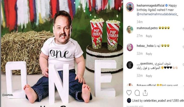 ونشر هشام صورة كوميدية لصديقه محمد محمود عبد العزيز وكتب: "عيد ميلاد سعيد يا أجدع واحد في مصر".