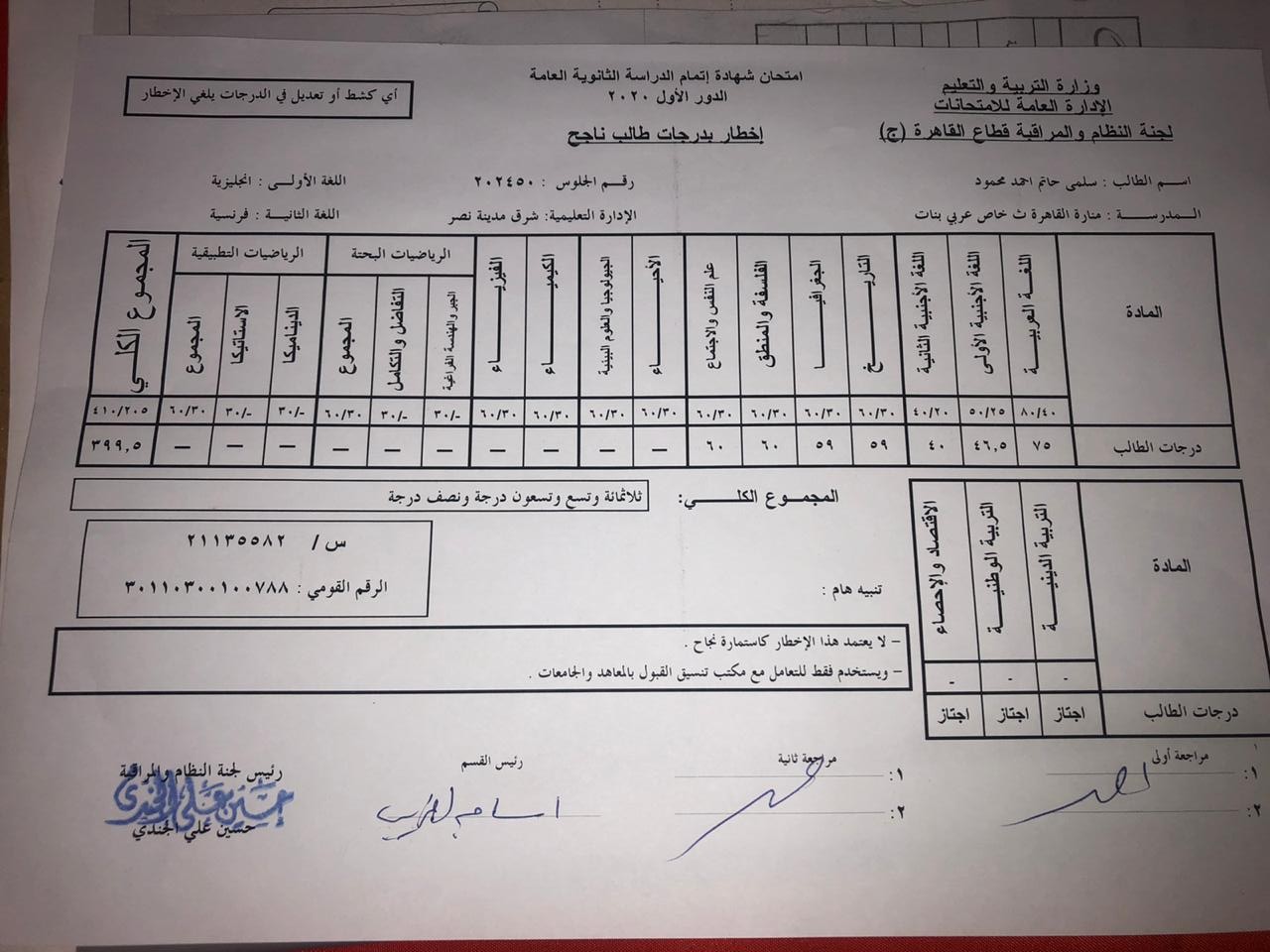 وأكدت الطالبة أنه تم إبلاغ مكتب التنسيق بدرجاتها الزيادة وحصلت على الشهادة الجديد، حيث إن مجموع الطالبة قبل الزيادة كان 364.5 درجة، ووصل بعد الزيادة إلى 399.5 درجة، موضحة أنها ترغب فى الالتحاق بكلية الإعلام.