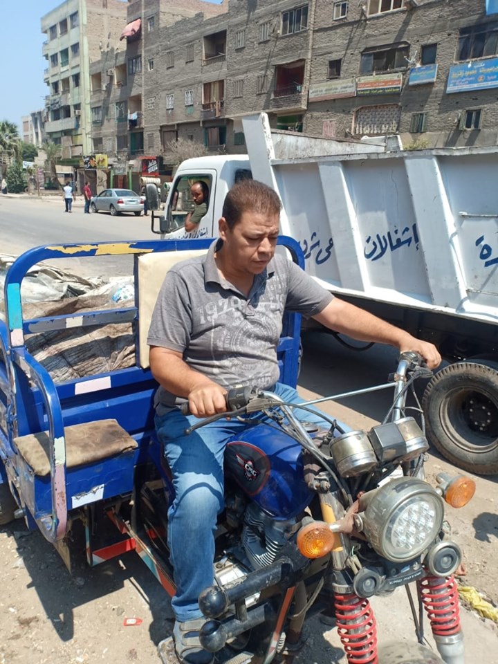 الجهاز التنفيذى بحى شرق يقوم بمصادرة تريسكل اثناء القاءئه المخلفات بشارع ١٥ مايو