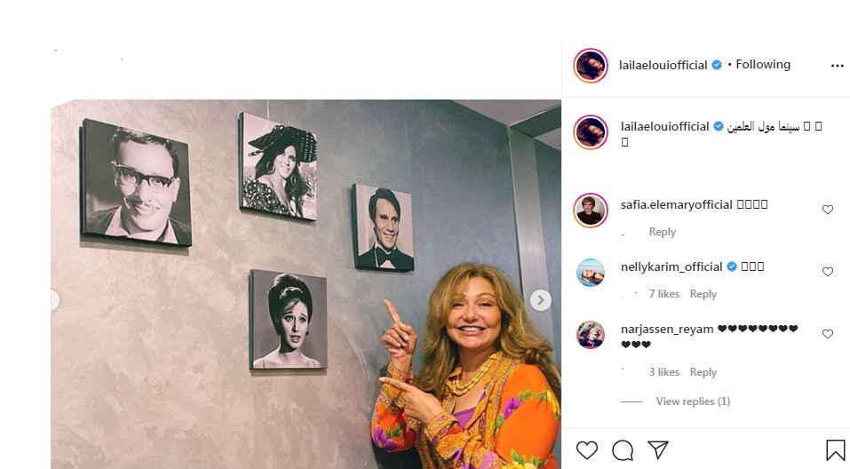 شاركت النجمة ليلى علوى جمهورها بمجموعة صور لها بسينما مول العلمين، بجوار صور نجوم زمن الفن الجميل التى تزينت بها جدران السينما، عبر حسابها بموقع "إنستجرام"، معلقة عليها قائلة :"سينما مول العلمين"، ولاقت الصور إعجاب عدد من النجوم منهم النجمة نيللى كريم، وصفية العمرى.