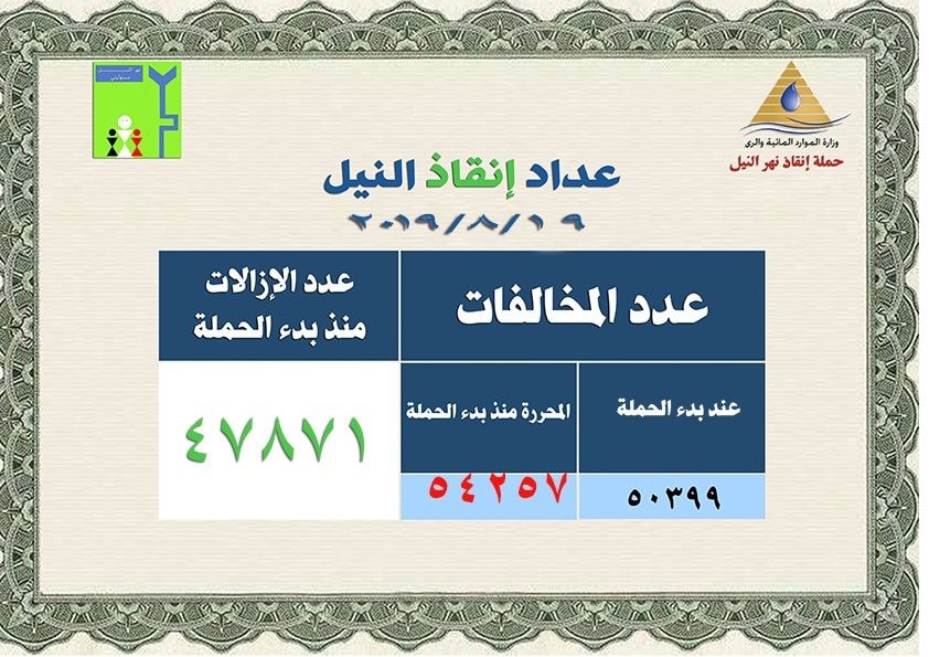قامت اليوم وزارة الموارد المائية والري الإثنين 19 أغسطس 2019 بتنفيذ عددد 51 قرار ازالة في نطاق محافظات