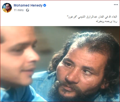 محمد هنيدى ينعى فرعون السينما المصرية الفنان عبد الرازق الشيمى