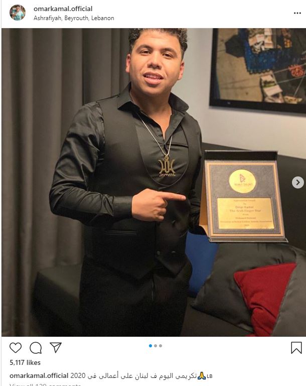 شارك مطرب المهرجانات عمر كمال، جمهوره ومتابعيه عبر حسابه الرسمي على موقع التواصل الاجتماعي "انستجرام"، صورا من تكريمه الجمعة في لبنان، معلقا عليها :" تكريمى اليوم في لبنان على أعمالى فى 2020"، وذلك بعد أحياء حفلا غنائيا الخميس مع صديقه مطرب المهرجانات حسن شاكوش.