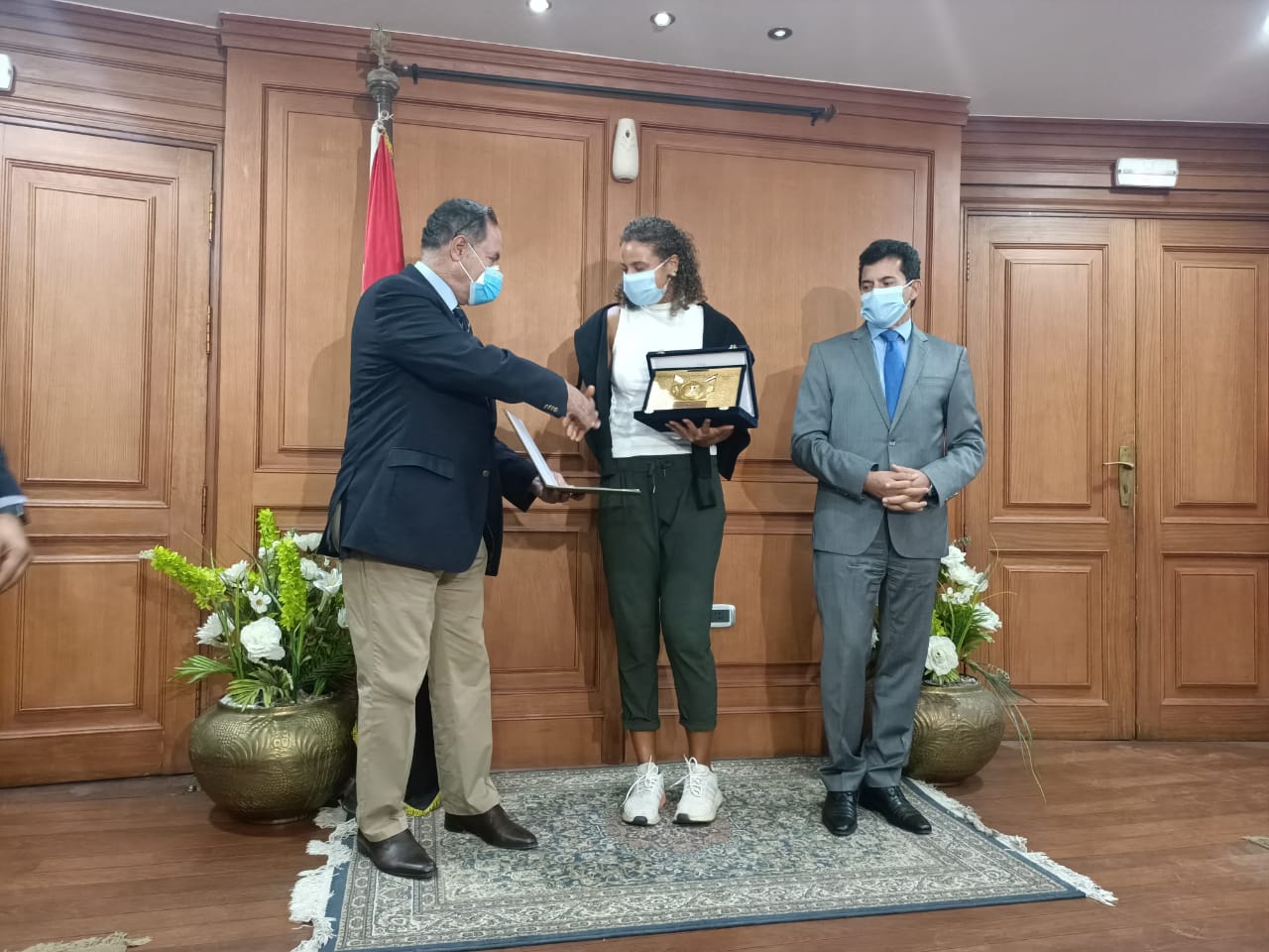 أهدى الدكتور أشرف صبحى وزير الشباب والرياضة، درع وزارة الرياضة لميار شريف ومحمد صفوت بطلا التنس الأرضى، على هامش حفل تكريم الوزارة للثنائى عقب الإنجازات التى حققاها فى الفترة الماضية.