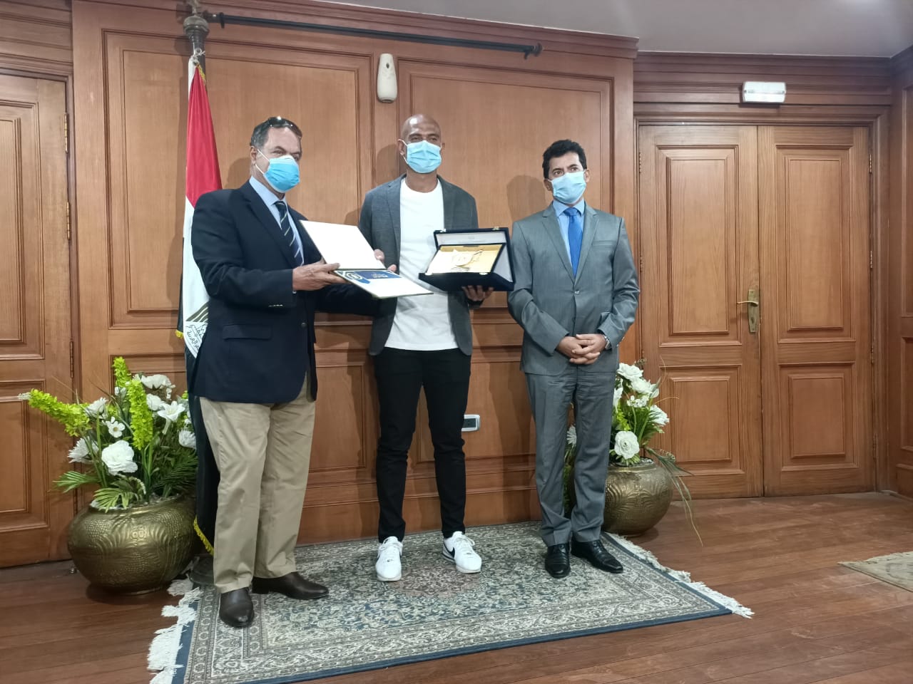 أشرف صبحى يهدى ميار شريف ومحمد صفوت درع وزارة الرياضة