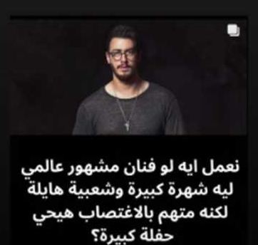 ومن جانبه تجاهل لمجرد الحملات ضده، ونشر عبر حسابه بموقع "إنستجرام"، صورة جديدة له، ربطها البعض بما يتعرض له من حملة هجوم بسبب قضايا الإغتصاب، معلقا عليها :"لا شىء يهز ابتسامة القلب، أحب جمهورى، أحب عائلتى".