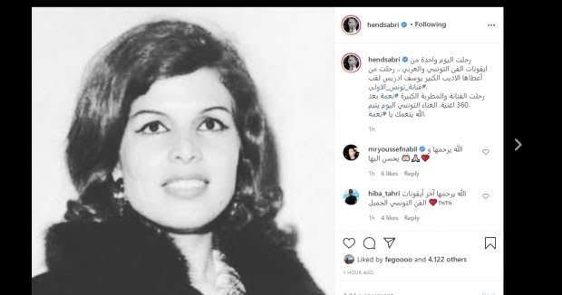 هند صبرى تنعى نعمة التونسية: فنانة تونس الأولى رحلت بعد 360 أغنية