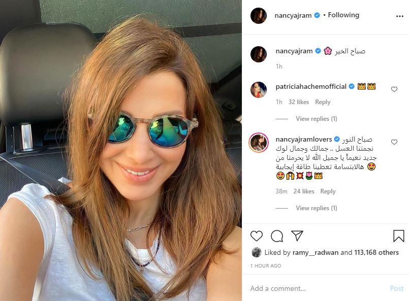 شاركت النجمة نانسى عجرم، جمهورها بصورة صباحية جديدة لها عبر حسابها على إنستجرام، وكتبت نانسى على الصورة قائلة:" صباح الخير"، و نالت الصورة على إعجاب العديد من متابعيها، متغزلين في جمالها و إطلالاتها.