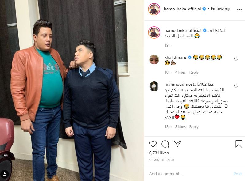 شارك مطرب المهرجانات حمو بيكا متابعيه بصورة جديدة تجمعه بالمطرب عمر كمال، عبر حسابه على إنستجرام، وكتب على الصورة قائلا: "استنونا في المسلسل الجديد"، ولم يكشف تفاصيل أخرى عن المسلسل.
