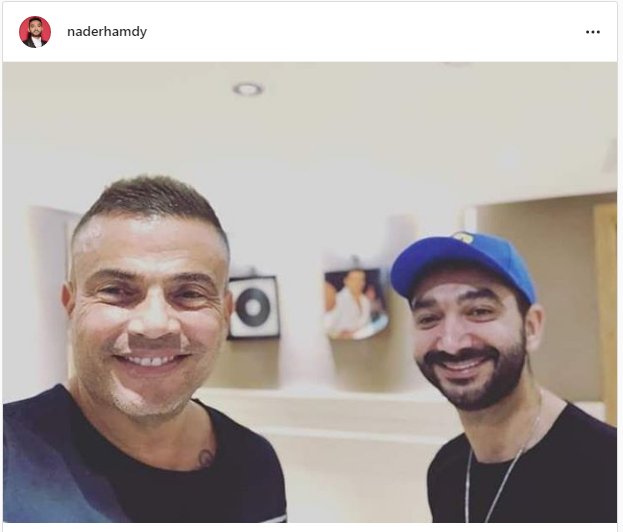 ظهر الهضبة عمرو دياب في أحدث صورة له مع الموزع الموسيقى ونجم فريق واما نادر حمدى، حيث نشر الأخير صورة لهما معاً عبر حسابه الرسمي على موقع انستجرام، واكتفى بالتعليق عليها بكتابة: "الهضبة عمرو دياب".