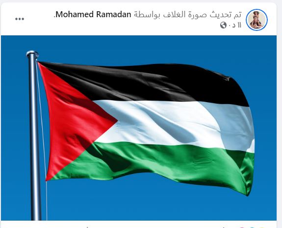 شارك الفنان محمد رمضان جمهوره ومتابعه عبر حسابه الرسمي على موقع التواصل الاجتماعي "انستجرام" صورة جديدة، في الساعات الأولى من صباح اليوم الإثنين، حيث نشر صورة العلم الفلسطيني وجعلها صورة أساسية لغلاف صفحته على "فيسبوك" وذلك بعدما انتشرت صورة له برفقة مغني إسرائيلي على السوشيال ميديا.