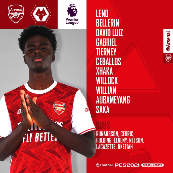 ارسنال ضد وولفرهامبتون وجاء تشكيل أرسنال كالتالي ..