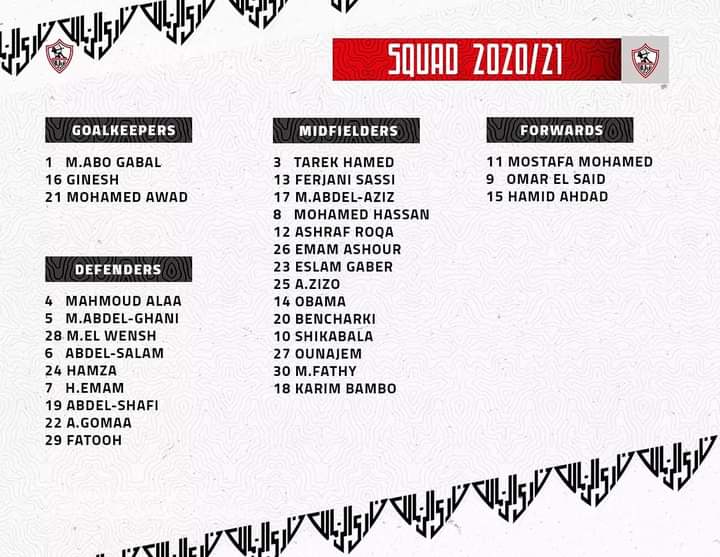 أعلن نادي الزمالك عبر صفحته الرسمية علي موقع التواصل الاجتماعي " فيس بوك " عن قائمة اللاعبين الذين سيخوض بهم الفريق مشوار الموسم المقبل والذي يشارك الزمالك خلاله في بطولتي الدورى وكأس مصر بخلاف بطولة دوري أبطال أفريقيا.
