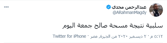 أعلن عبد الرحمن مجدى، وكيل أعمال النجم صالح جمعة، لاعب الأهلى الذى فسخ التعاقد معه بالتراضى مؤخرا، عن تعافى جمعة من الإصابة بفيروس كورونا المستجد "كوفيد - 19"، بعد سلبية نتيجة المسحة الأخيرة، حيث كتب مجدى، عبر حسابه على تويتر: "سلبية نتيجة مسحة صالح جمعة اليوم".