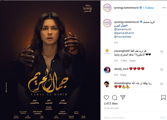طرحت شركة "سينرجى" للإنتاج الفنى الملصق الدعائى للمسلسل الجديد "جمال الحريم" المقرر عرضه قريبا، وظهر فى الملصق الدعائى الجديد بطلة المسلسل نور وهى تنظر بفزع وخلفها يدين يحاولان الإمساك بها.