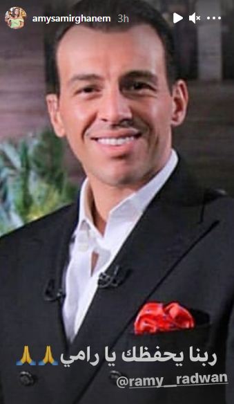 حرصت الفنانة إيمي سمير غانم على تقديم الدعم للإعلامى رامى رضوان زوج شقيقتها النجمة دنيا سمير غانم، بعد تأكيده أمس إصابته بفيروس كورونا، متمنية له الشفاء، ووجهت إيمى رسالة له، حيث نشرت صورته عبر خاصية ستورى بحسابها بموقع "إنستجرام"، مصحوبة بتعليق "ربنا يحفظك يا رامى".