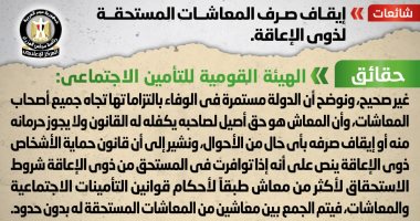 الحكومة تنفى إيقاف صرف المعاشات المستحقة لذوى الإعاقة