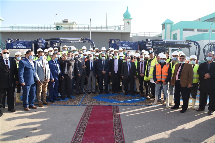 وشهد، رئيس الشركة القابضة استعراضا لعدد 65 سيارة مجهزة، 20 بدالة و38 طلمبة، و10 مولدات متنقلة على عجل، وعدد 2 سيارة سيول والتى تستوعب كميات مياه 1350 م3/ساعة، بخلاف أبراج إنارة تستخدم في حالات الإصلاح، وسيارات الكلور، والمعدات والسيارات الصغيرة والتى تستخدم لسحب المياه بالشوارع الضيقة.